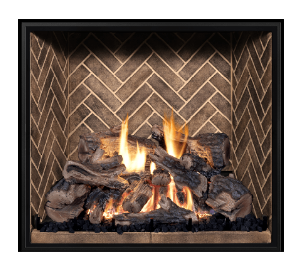 Traditional oak logs, red brick liner, grace wide front with accent bars